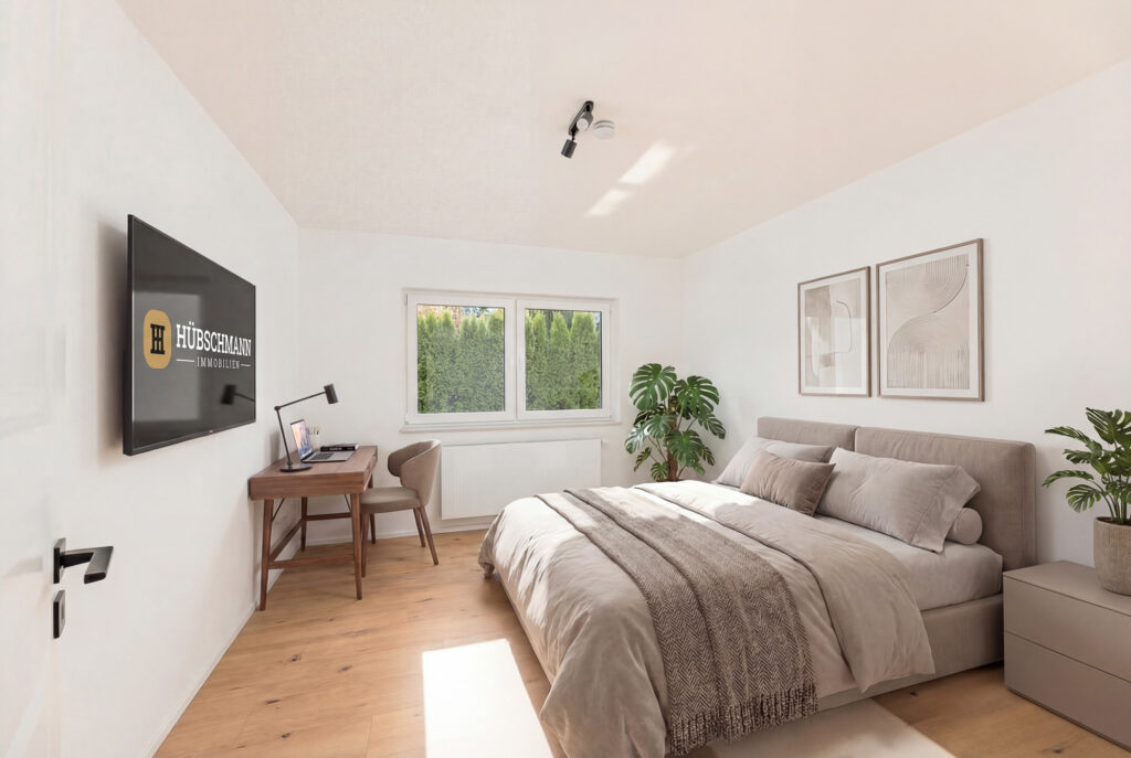 Im Dachgeschoss befinden sich drei geräumige Zimmer sowie ein weiteres Tageslicht-Badezimmer mit Dusche und WC – ebenfalls ausgestattet mit hochwertigen Hansgrohe-Armaturen und einer Toilette mit Intim-Duschfunktion.